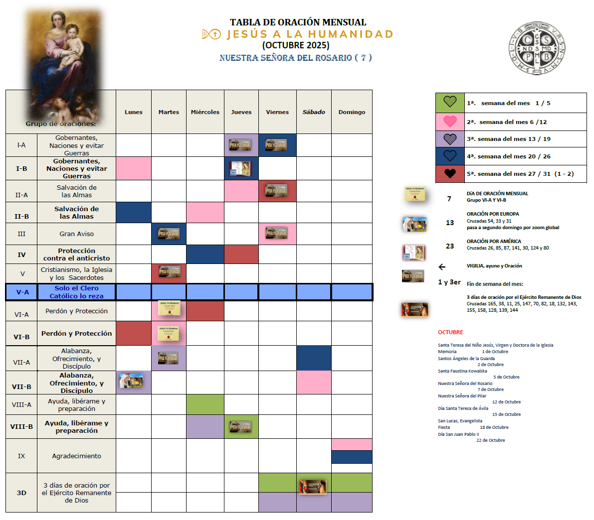 Oración de protección para todos los "Grupos de Oración de Jesús a la Humanidad"